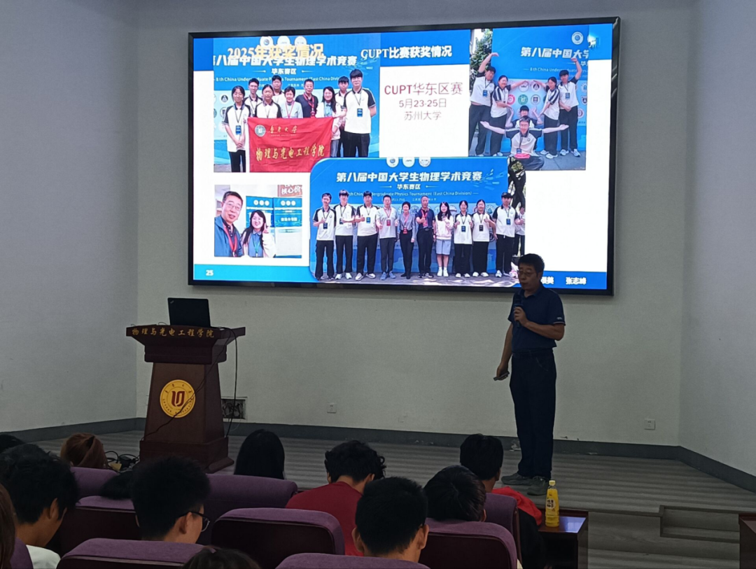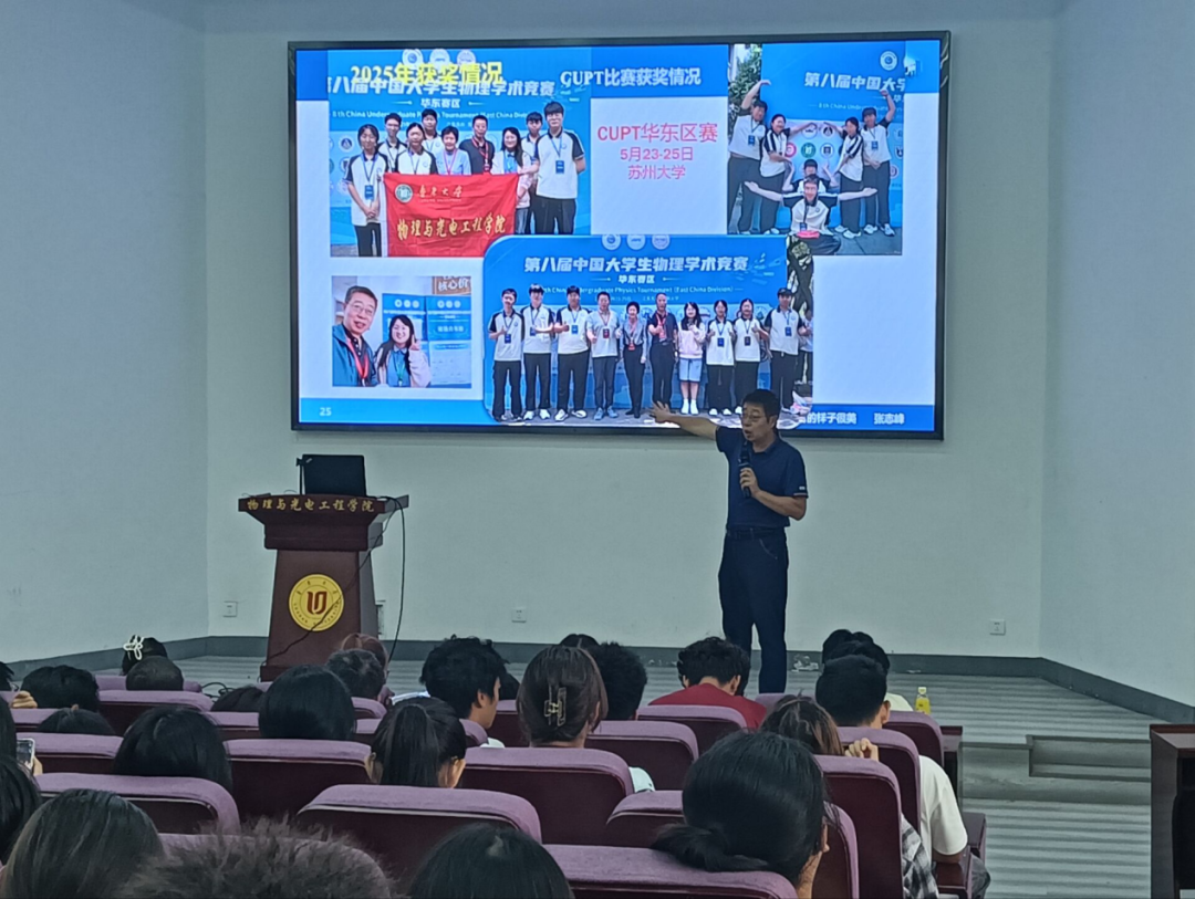 为激发学生对物理及光电领域的探索热情,吸纳更多优秀学子加入科技创新队伍,物理与光电工程学院面向2025级新生开展创新竞赛宣讲活动。本次活动由张志峰老师主持,围绕物理竞赛、光电竞赛核心内容与科协发展成就展开,为在场同学搭建了了解学科竞赛、融入科创集体的重要桥梁。