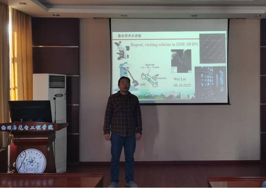2025年10月23日下午,物理与光电工程学院钟海副教授和刘伟副教授在物理学院三楼学术报告厅,分别作了题为“自支撑氧化铪基铁电薄膜研究进展”和“金属材料冲击脆性机制和辐照硬化效应的模拟研究”的访学成果报告,我校部分教师和学生参加了报告会。