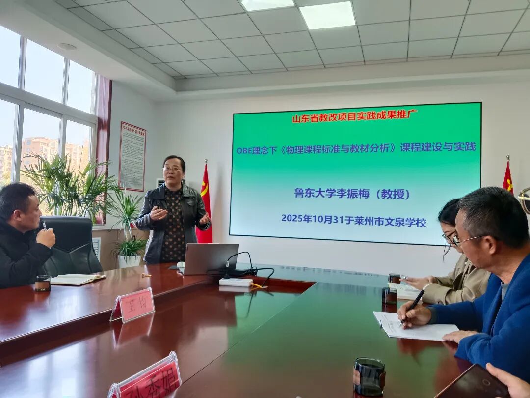 为助力中小学科学教育高质量发展,推动跨学科实践落地生根,鲁东大学物理与光电工程学院李振梅教授受邀于10月31日赴莱州市文泉学校开展专项指导活动,为莱州区域教育工作者赋能。