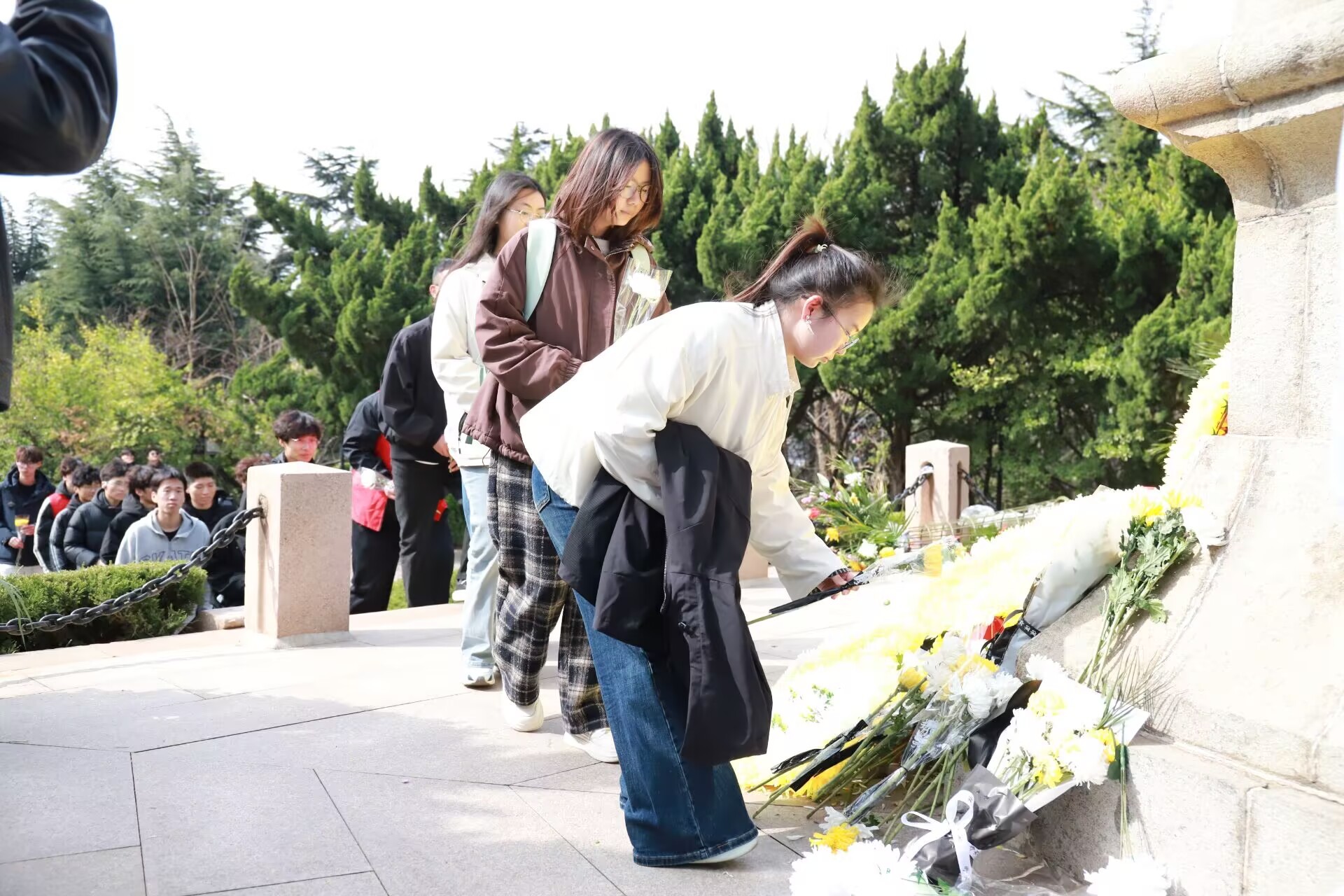实地祭扫致敬英烈,重温初心坚定信念。学院组织学子前往烟台山抗日烈士纪念碑开展实地祭扫活动。活动现场,全体同学身着整洁服装,在纪念碑前整齐列队、神情肃穆。学院学生骨干现场讲述纪念碑修建背景,感悟革命先辈舍生取义的家国情怀与崇高信仰。随后,同学们依次向纪念碑鞠躬献花、低头默哀,以最朴素的方式表达对革命先烈的深切缅怀与敬意。活动最后,大家在纪念碑前有序合影,将这份庄重与感动留存心间,进一步坚定了“以吾辈青春,护盛世中华”的理想信念。