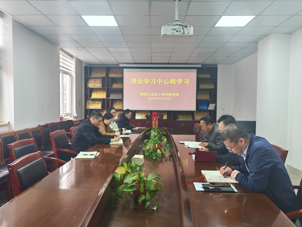 3月30日,物理与光电工程学院党委理论学习中心组围绕“深入学习领会习近平总书记关于树立和践行正确政绩观的重要论述”开展专题学习,学院党委副书记张永杰主持会议,理论学习中心组成员和各党支部书记参加。
